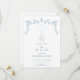 An elegant minimalist wedding design featuring refined baroque line art in soft dusty blue tones. The symmetrical ornamental frame and airy white background create a timeless, European-inspired look that feels both classic and modern. Ideal for couples who love understated luxury, fine detailing, and a calm, sophisticated aesthetic.