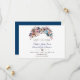 Buquê elegante, delicado, azul empoeirado, rosa aquarela-doce, sobre fundo branco; no fundo, um fundo azul marinho. Uma escolha excelente para todos os casamentos sazonais, especialmente para o outono, ou casamentos no inverno. Use a ferramenta Personalizar para adicionar suas informações e alterar as cores das fontes. Para encontrar itens, por favor, visite minha Coleção de Flores de Rosa Azul Dusty.