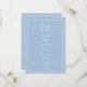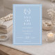 A dusty blue colored background, white frame. Personalize and add your monogram initials, names and the details.