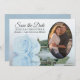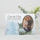Estas belas cartas são a forma perfeita de deixar seus amigos e família saberem salvar a data do seu próximo casamento. Eles apresentam uma design romântica com um rosa pálido, poeirento, azul ou azul, pálido e longo solteiro, refletindo em uma piscina de água com ondas e ondulações com sua foto em forma oval. A legenda: Salvar a data com espaço para seus nomes, data e local.