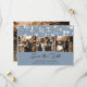 Elegante personalizou cartões salve a data de fotos de casamento azuis empoeirados com uma letra moderna. Nosso casamento salvou a data com uma colagem fotográfica de 4 imagens contra um fundo azul empoeirado, enfeitado com luzes de cordas. Personalize facilmente este azul empoeirado salve o cartão de data com suas imagens e detalhes de casamento, incluindo um site de casamento, se desejar. Para pedidos personalizados, envie-nos uma mensagem.