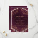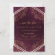 Design elegante de cartão de salvar a data do casamento com imitação de folha dourada e elementos botânicos em um fundo vermelho burgundy escuro