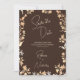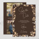 This stunning Autumn Wedding Save the Date has delicate yet vibrant Watercolor Wildflowers in a Copper Flame effect that almost seems to glow! The Modern Elegant Handwritten Script in Ivory is showcased by a rich Coffee Brown background. Add Your 2 Photos to the back, with the template. (This is especially suited for an evening autumn wedding.) It will leave quite the impression!
