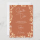 This stunning Wedding Save the Date has delicate yet vibrant wildflowers that almost seem to glow, adorning the edges and the Modern Handwritten Script lettering in an Elegant Lettering. The background is a pretty Burnt Orange that showcases your names and details perfectly! Add Your Photo to the back, with the template