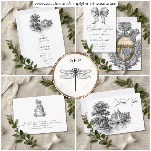 Reserve A Data Elegant Black White Toile French Manor Wedding