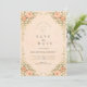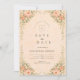 A romantic vintage rose arch frames this timeless garden wedding design, featuring soft blush blooms, sage greenery, and a warm parchment background. The structured botanical border creates an elegant vertical silhouette, while the classic serif typography adds refined, old-world charm. Perfect for formal garden ceremonies, estate venues, and couples who love traditional floral elegance with a European touch.
