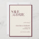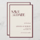 Create your own custom wedding save the dates in a luxurious old money style. Add your personalized details announcing your wedding day in elegant, timeless typography featured here in burgundy and cream color design.