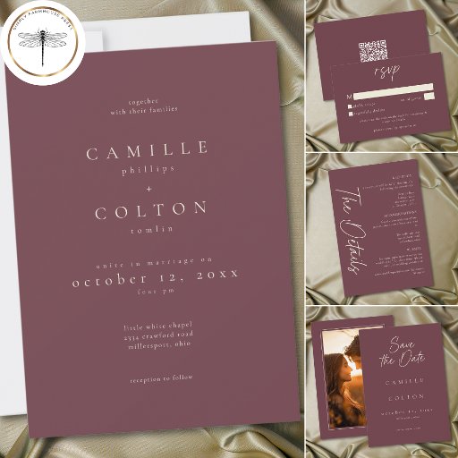 Reserve A Data Elegant Burgundy Wine Minimalist Wedding Photo