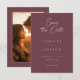 Celebrate your love with this minimalist burgundy wine wedding photo save the date card design. It's perfect for an elegant autumn ceremony. This earthy, modern look offers a warm and sophisticated feel for your autumn hue wedding. Created by Simply Farmhouse Press.