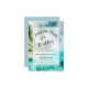 This beautiful wedding Save the Date card features a beautiful design with script calligraphy and a watercolor landscape of a tropical beach with turquoise or aqua colored water, pristine sands, and palm trees. Elegant, stylish, and chic, this card is a great way to let your friends and family know to save the date for your special day. Perfect for an island or coastal wedding.