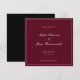 Elegant, formal and classy square Wedding Save the Date with Script typography for the couple's names, dark burgundy red background, an elegant frame on the front and a black backer. Customize it with your own wedding information. A very elegant and sophisticated Wedding Announcement for modern couples.