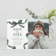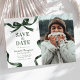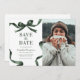 Announce your upcoming graduation in timeless style with this elegant Save the Date announcement. Featuring a photo of the graduate on a clean white background, framed by a stylish green watercolor bow and ribbon border, this design perfectly blends classic sophistication with modern charm.