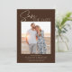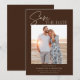 A modern dark brown save the date photo announcement featuring a ivory calligraphy script font and simple minimalist design. This unique save the date card is a trendy way to announce your wedding. THE SAMPLE PHOTO IS NOT INCLUDED. REPLACE WITH YOUR OWN PHOTO BEFORE ORDERING.