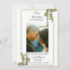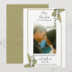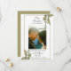 The design combines a refined typographical layout with subtle, soft-colored greenery to create a sophisticated and understated look. The lettering may feature an elegant script font to add a touch of romance. This is part of a complete set.