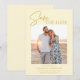 A modern butter yellow save the date photo announcement featuring a calligraphy script font and simple minimalist design. This unique save the date card is a trendy way to announce your wedding. THE SAMPLE PHOTO IS NOT INCLUDED. REPLACE WITH YOUR OWN PHOTO BEFORE ORDERING.
