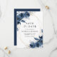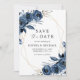 Reserve A Data Elegant Navy Blue Flowers & QR Code Wedding