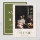 This modern & retro funky minimalist Wedding olive green photo Save The Date Template is great for you. If you are looking for a pretty, elegant and easy to customize olive green Wedding image Save The Date Template. A very elegant simple ivory cream script wedding save the date on burgundy background on the front. Which features green save the date bold typography on plain ivory background. And customizable photo on the back. Grab this stylish wedding save the date and make your invites truly engaged.