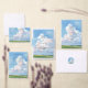 This elegant wedding save the date card features a beautiful painted landscape background with blue sky, white clouds, a green field, and elegant typography. On the back is your "full-bleed" vertical photo, which can be removed if desired. It's the perfect design for a rustic yet elegant spring or summer wedding. See the collection for coordinating items.