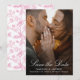 Celebrate your upcoming wedding with a romantic and timeless save the date card. The front highlights your vertical engagement photo with “Save the Date” displayed in flowing white calligraphy, paired with traditional serif lettering for your names, date, and location. On the back, a vibrant pink and white chinoiserie-inspired floral pattern adds a soft, feminine touch that feels classic yet inviting. This design is ideal for couples seeking an elegant save the date that blends romance with polished detail.