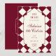 Save the date featuring digitally hand drawn frame with your personalized information in elegant script and serif fonts on a burgundy and cream checkered background. You can find more matching products from this stunning wedding collection in our store.