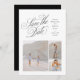 This elegant three-photo wedding save the date features a beautiful "save the date" script type treatment, simple custom text and a collage of one large and two smaller photos. This beautiful save the date design is a great way to share engagement photos and tell family and friends wedding details. The back features an elegant matching black with soft dots along iwth a customizable message and a qr code for your wedding website. This original card by Lea Delaveris Design is available in more styles and colors in the collection and also as a digital save the date download.