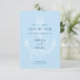 Elegante cartão de salvar a data com uma grande âncora ao fundo em um tom suave de azul. A ilustração da âncora tem um visual vintage enquanto o design limpo é moderno. Este cartão sem foto é perfeito para um casamento na praia ou casamento de destino. Este design sofisticado definirá o tom para uma ocasião única e memorável.