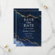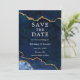 Cartão de Save The Date de Geodo de Ágata Azul Mármore Dourado com Aquarela Elegante Moderna