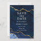 Cartão de Save the Date de Geodo de Ágata Mármore Azul e Dourado com Aquarela Moderna e Elegante