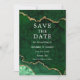 Moderno Cartão de Save the Date de Aquarela Elegante Geodo de Ágata Mármore Esmeralda Verde e Dourado