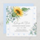 Este design apresenta um girassol chic, elegante, cor d'água, bolinhas azuis, eucalipto floral e tipografia personalizada.