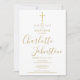 Elegante convite de batismo ou crisma com assinatura dourada para salvar a data, apresentando uma assinatura elegante com nome em letra dourada. Personalize com as informações especiais do seu batismo ou crisma em letras douradas elegantes neste design neutro em termos de gênero. Criado por Thisisnotme©