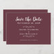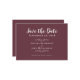 Cartões elegantes e delicados de guardar a data na lendy burgundy, com cartazes e scripts brancos nítidos. O design romântico sem fronteiras permite que você escolha facilmente a forma de papel para o lançamento do seu noivado. Duas decorativas florescem cada uma contendo um solteiro cardíaco delicadamente com o nome da noiva e do noivo. Para obter resultados ideais, pule as linhas e capitalize como na amostra. Envie perguntas ou solicitações personalizadas para invitationsuites@gmail.com