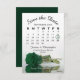 Estas belas Cartões salve a data apresentam uma bela fotografia de um rosa verde-esmeralda, há muito solteiro, refletindo em água com ondas e ondulações. O cartão inclui um calendário com a data do seu casamento em círculo de coração. Belo design romântico.
