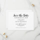 Elegantes e delicados cartões de aviso de data de casamento em sofisticado preto e branco são clássicos, formais e atemporais. O design romântico sem bordas permite que você escolha facilmente a forma do papel para o anúncio de seu noivado. Dois floreios decorativos, cada um contendo um único coração, envolvem delicadamente o nome da noiva e do noivo. Para obter resultados ótimos, pule as linhas e use letras maiúsculas como no exemplo.