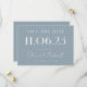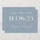 Personalize este elegante design azul empoeirado, salve a data para o seu casamento, nomes e detalhes.