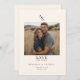 Elegante, clássico, monograma, bege e preto, foto do casamento 1 "Salvar a Data". Nosso casamento minimalista Salve o cartão de data apresenta um monograma sutil e clássico que complementa os estilos de casamento tradicionais e contemporâneos. Este design versátil combina-se sem esforço com qualquer paleta de cores, oferecendo possibilidades infinitas de refletir a sua personalidade e o estilo do seu casamento. Disponível como um impressão de alta qualidade ou um download digital ecológico, perfeito para aqueles que preferem uma pegada de carbono menor. A opção digital é não só sustentável, mas também ideal para aqueles que apreciam a flexibilidade e desfrutam da personalização dos seus convites. Com um recurso de edição fácil de usar, você pode personalizar rapidamente suas iniciais e outros detalhes importantes para tornar seu convite realmente exclusivo. Seja o seu casamento clássico ou moderno, este convite irá adicionar um toque de beleza eterno e estilo subestimado à sua celebração.