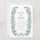 Este Elegante Eucalyptus Save the Date é uma bela mistura de tons verdes sábios e elementos botânicos simples, que oferece uma fusão sem esforço de estética moderna rústica e elegante do boho, que mostra botânicos únicos, pintados à mão, que capturam a beleza do eucalipto. A paleta de cores subestimada e detalhes delicados formam um design harmonioso que naturalmente dá o tom para um dia inesquecível. É perfeito para a noiva contemporânea que aprecia a mistura de simplicidade, elegância, e um toque da natureza.
