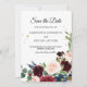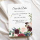 Anuncie seu grande dia com estilo com este cartão de Salve a Data em aquarela elegante, apresentando flores românticas em burgundy, rosa e azul-marinho com delicados acentos de respingos de ouro. Perfeito para casamentos de outono ou inverno, este modelo oferece uma estética atemporal e moderna. Personalize facilmente os nomes, data e detalhes para criar um anúncio único que seus convidados adorarão.