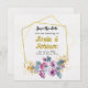 Anuncie o seu casamento com este sofisticado cartão de save the date floral dourado. O design inclui um desenho floral e uma moldura geométrica. Este design é uma opção verdadeiramente única de save the date. Este é um cartão de save the date de casamento clássico que faz parte de uma coleção de convites de casamento.