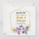 Anuncie o seu casamento com este sofisticado cartão save the date floral dourado. O design inclui um desenho floral e uma moldura geométrica. Este design é uma opção verdadeiramente única de save the date. Este é um cartão save the date de casamento clássico que faz parte de uma coleção de convites de casamento.