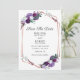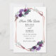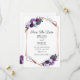 Save the Date Quadro geométrico floral roxo para o anúncio do seu dia especial. Esta é parte da coleção de casamento roxo e chá de noiva com este design se você é um que ama combinar seus convites, suprimentos para festas e acessórios de presente.