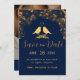 Anuncie seu casamento com estes elegantes cartões de save-the-date azul-marinho com flores douradas e pássaros que têm um fundo azul-escuro adornado com um intricado padrão de folhagens florais douradas e tipografia moderna. A combinação do azul-marinho rico e do dourado brilhante cria uma estética elegante e luxuosa. Insira sua foto e o site do seu casamento no verso.