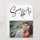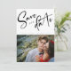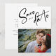 Torne seu anúncio especial inesquecível com nosso cartão de "Save the Date" de casamento com foto e letra diagonal elegante. Este cartão lindamente projetado apresenta uma impressionante letra preta diagonal que escreve "Save the Date" no topo, adicionando um toque de elegância moderna. Abaixo do anúncio, seus nomes e data de casamento são exibidos em uma fonte sans-serif elegante, espaçados perfeitamente para criar um visual limpo e sofisticado.