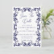 Elegante Azul-Marinho Profundo e Branco Brilhante Save the Date de Casamento com Foto em Talavera Mexicana - O Save the Date perfeito para um casamento com tema "Cielito Lindo". Com paleta de cores de azulejos tradicionais mexicanos Talavera em azul-marinho estiloso e branco brilhante e crocante. Texto de caligrafia e redemoinhos clássicos em estilo mexicano tornam este um Save the Date de casamento único, aconchegante e festivo. Perfeito para um casamento com tema de Festa Mexicana ou um casamento inspirado em Azulejo Espanhol. Personalize este save the date de casamento editável com os detalhes do seu evento e adicione sua foto de casal ou de noivado no verso. Disponível para encomendar em formato imprimível ou download digital instantâneo, fácil de enviar por e-mail, mensagem de texto ou mídia social.