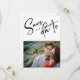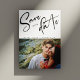 Torne seu anúncio especial inesquecível com nosso cartão de "Save the Date" de casamento com foto e letra diagonal elegante. Este cartão lindamente projetado apresenta uma impressionante letra preta diagonal que escreve "Save the Date" no topo, adicionando um toque de elegância moderna. Abaixo do anúncio, seus nomes e data de casamento são exibidos em uma fonte sans-serif elegante, espaçados perfeitamente para criar uma aparência limpa e sofisticada.