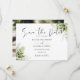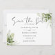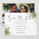 Este cartão de save the date de casamento de folhas de verdura botânica elegante pode ser personalizado com suas informações em tipografia chic com sua foto especial no verso. Projetado por Thisisnotme©