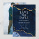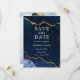 Cartão Moderno de Aquarela Azul e Dourado de Geodo de Ágata em Mármore para Salvar a Data - Parte de trás da Foto