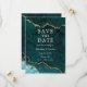 Cartão de Save The Date de Geodo de Ágata Mármore Teal e Dourado Aquarela Moderno Elegante