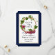 Elegante Moderno de Aquarela Uvas e Vinhas em Madeira Grinalda para Anúncio de Casamento - Fundo Azul com Moldura Dourada.