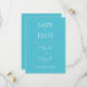 Belo oceano azul "Salve a Data" que é perfeito como prelúdio para o seu convite formal para todos os seus convidados. Feito com lindas fontes em branco simples e elegante. Perfeito para sua ocasião especial. Um belo Salve a Data para o seu casamento na praia.